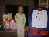 When Lily came up the stairs this morning she saw her easel set up and was so excited…we had been telling her that her present was so big we couldn’t wrap it up very well, so today I asked her what she thought she was going to get. She said she thought it was going to be a big pink pillow. I asked if she was glad it was an easel, she responded with a quick “Yes”.